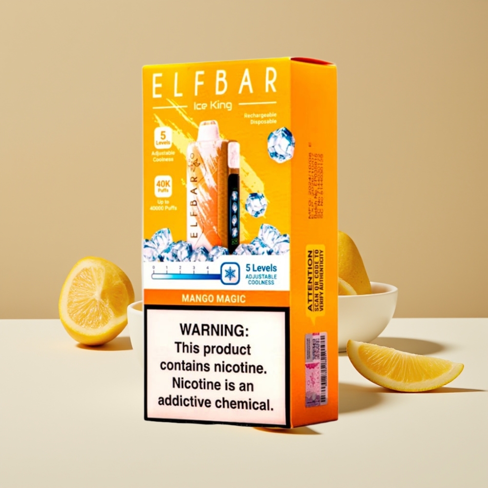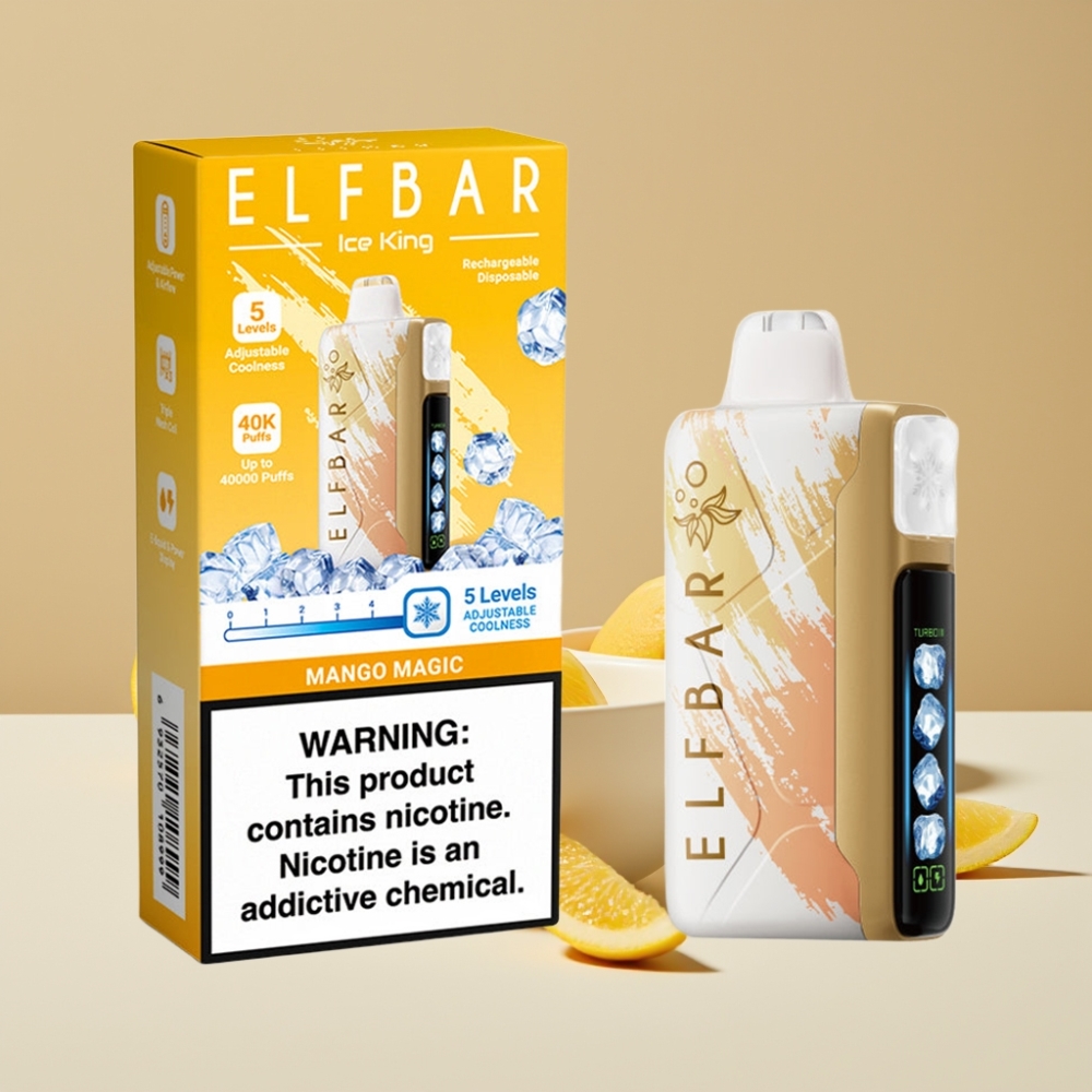 Elf Bar Ice King 40000 Puffs Disposable Vape Magie Mangue – 20ml, 5% Nicotine, Batterie 850mAh Rechargeable, 5 Intensités de Refroidissement