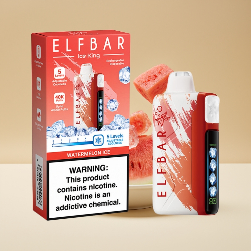 Elf Bar Ice King 40000 Puffs Disposable Vape Pastèque Glacée – 20ml, 5% Nicotine, Batterie Rechargeable 850mAh