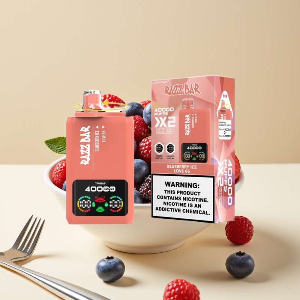 Razz Bar 40000 Puffs Jetable Vape – Écran d’affichage, 1.0Ω×2 Mesh Coil, Batterie 650 Mah, Port Type-C – MYRTILLE GLACÉE & LOVE 66