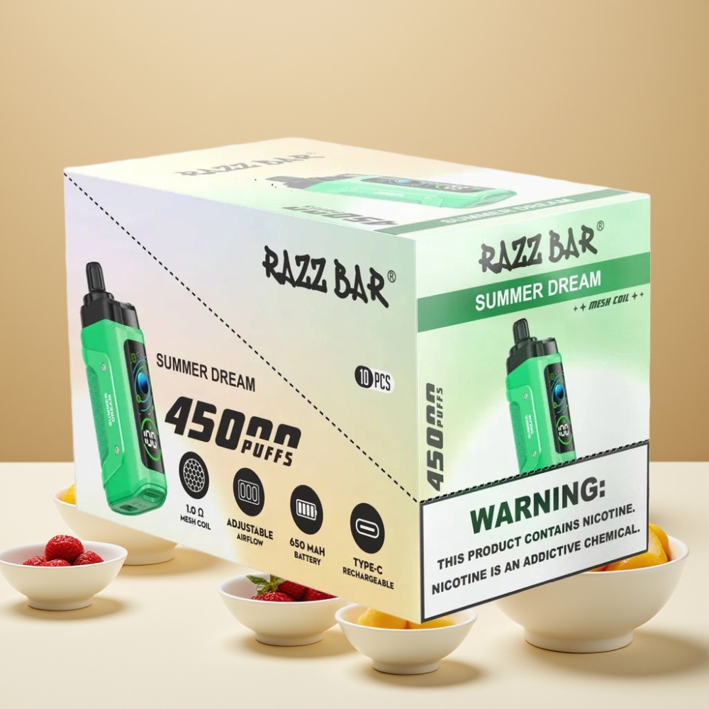 Razz Bar 45000 Puffs Jetable Vape Rêve d’Été – 45000 Puffs, Résistance Mesh 1.0 Ohm, Batterie 650 mAh