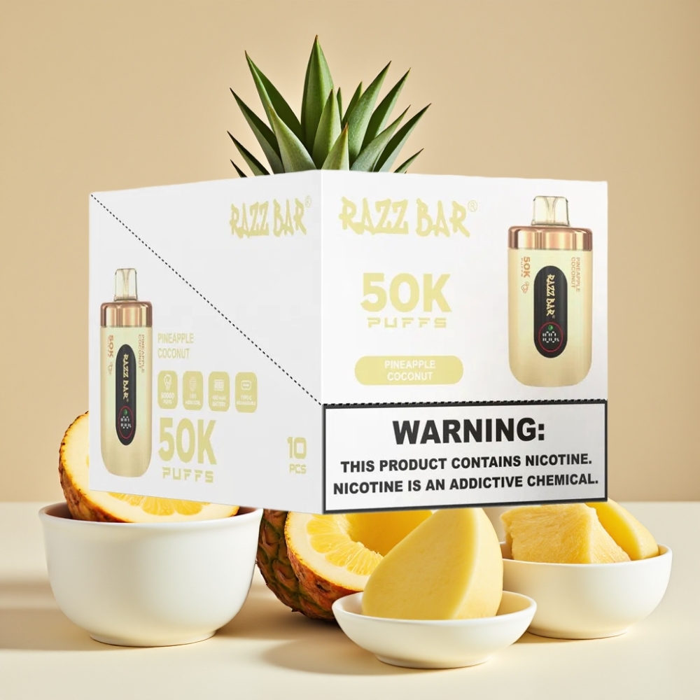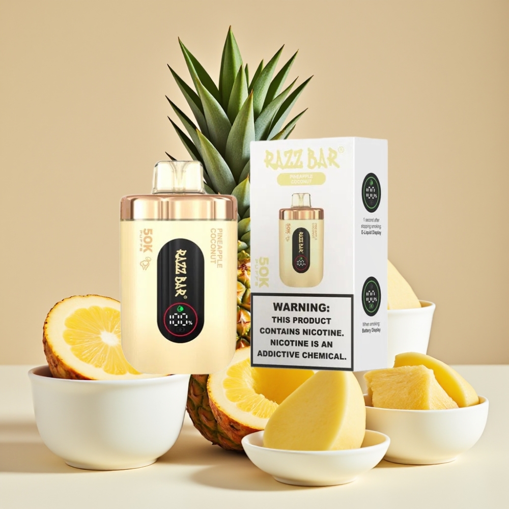 Razz Bar 50K Puffs Jetable Vape Ananas Noix de Coco – 50000 Puffs, 1.0 Ohm, Rechargeable Type-C
