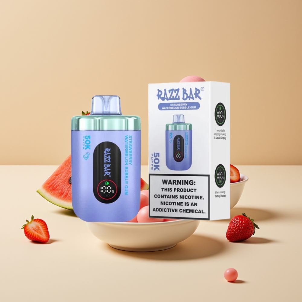 Razz Bar 50K Puffs Jetable Vape – Fraise Pastèque Bubble Gum, 50000 Puffs, 1.0 Ohm Mesh Coil, 650 Mah