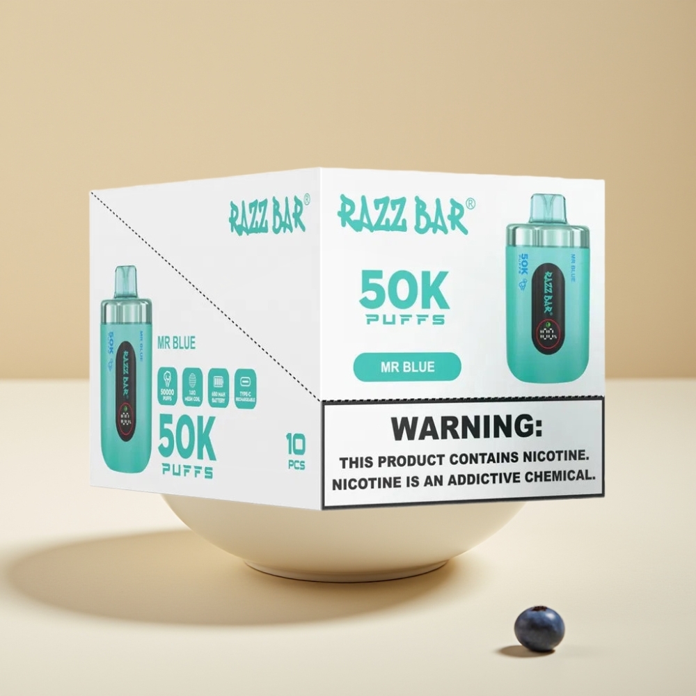 Razz Bar 50K Puffs Jetable Vape Monsieur Bleu – 50000 Puffs, 1.0 Ohm Mesh, Rechargeable Type-C