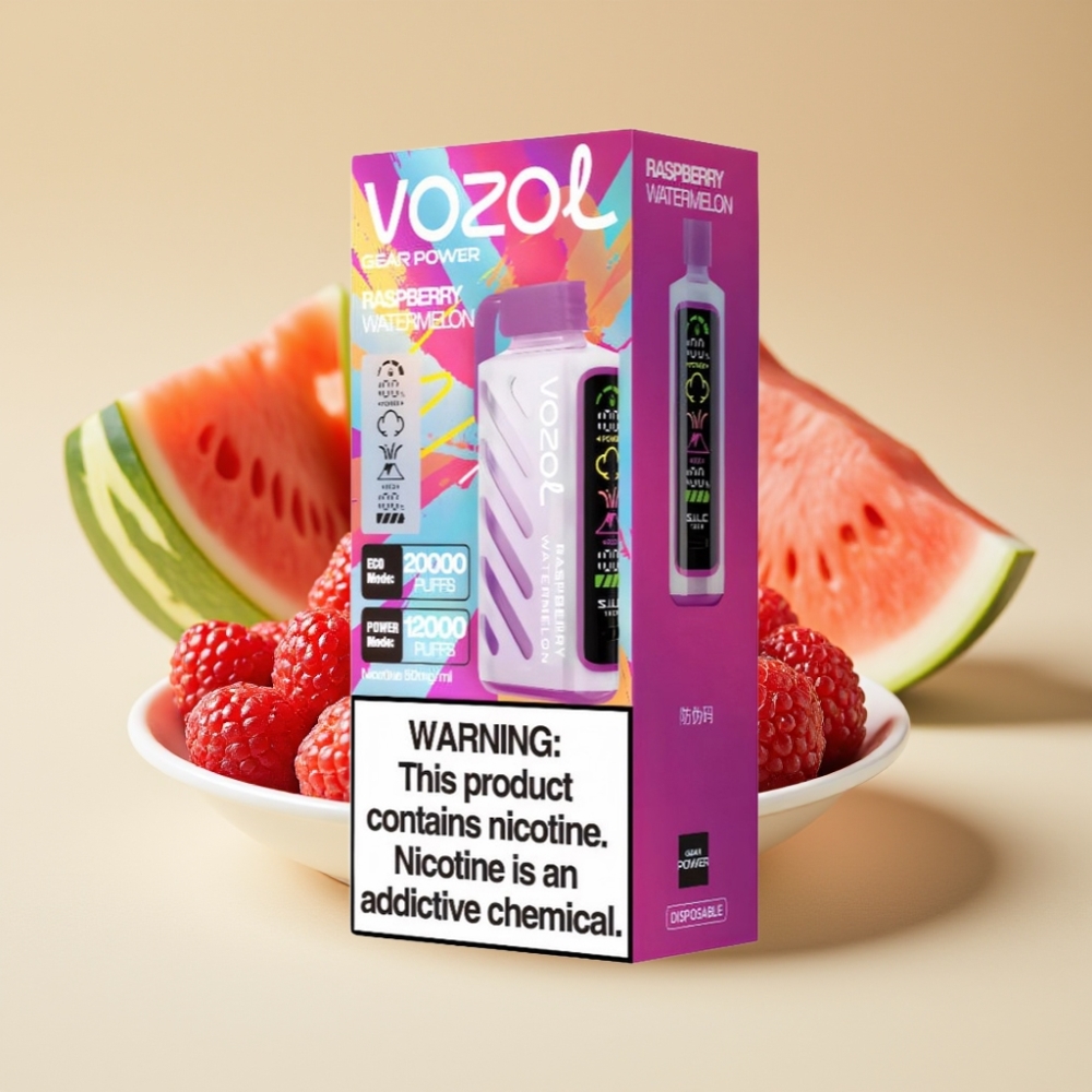 VOZOL Gear Power 20000 Puffs – Framboise Pastèque – 20mL, 5%(50mg), Écran Plein, Double Mesh Coil