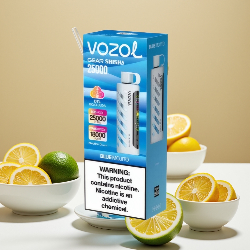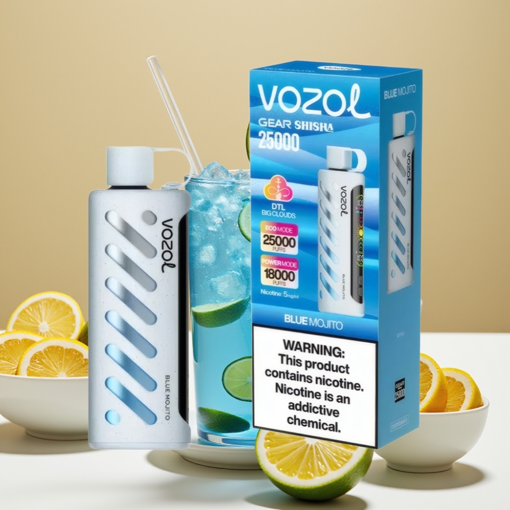 VOZOL Gear Shisha 25000 Puffs – 30 Saveurs Délicieuses, Double Mesh, 1000mAh, Mojito Bleu