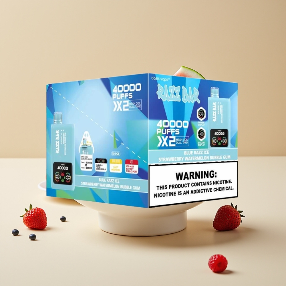 Razz Bar 40000 Puffs Jetable Vape – Écran d’Alimentation, 1.0Ω×2 Mesh Coil, Batterie 650 Mah, Port Type-C – Bleu Framboise Glace-Fraise Pastèque Bubble Gum