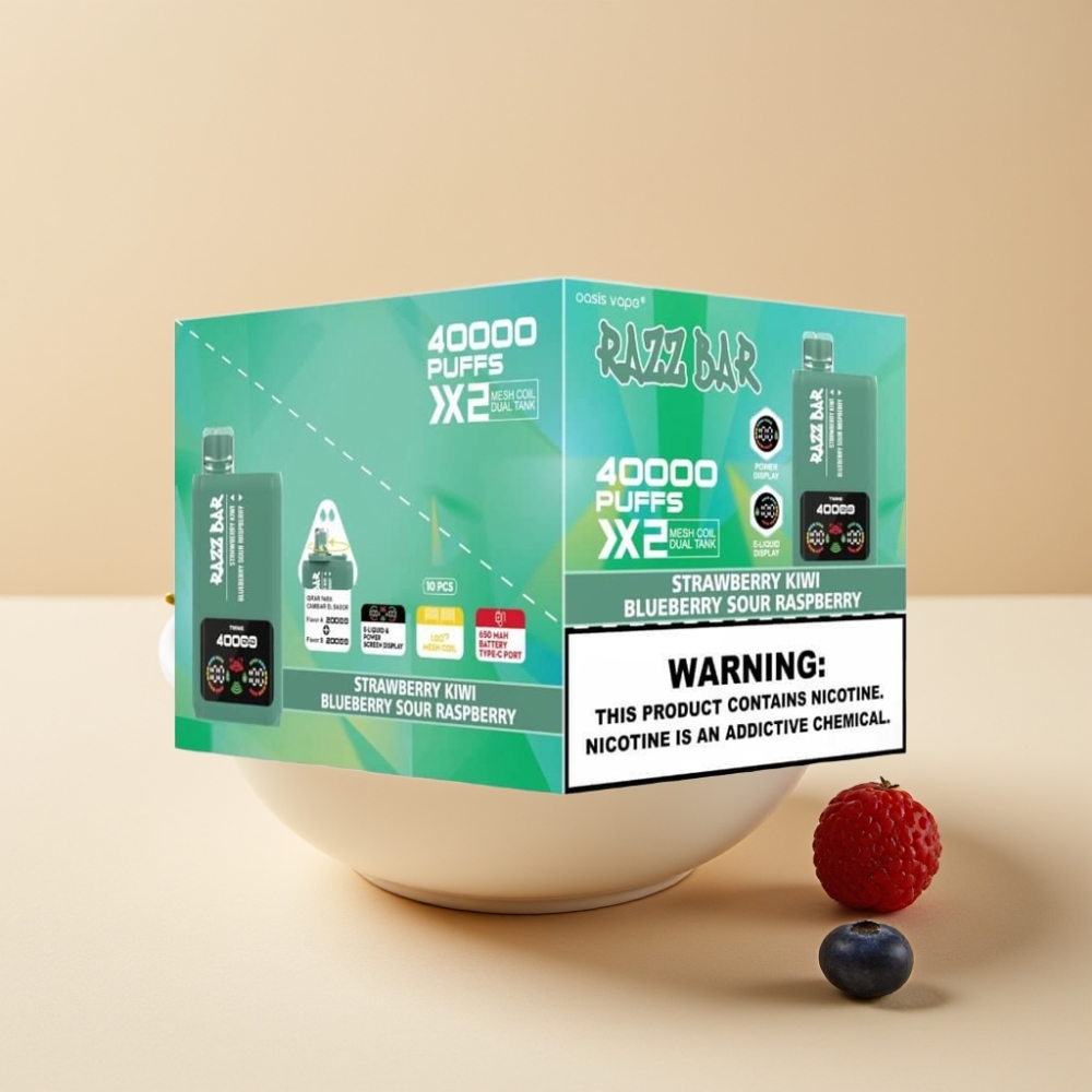 Razz Bar 40000 Puffs Jetable Vape – Fraise Kiwi & Myrtille Framboise Acidulée – Écran d’Alimentation, 1.0Ω×2 Mesh Coil, Port Type-C