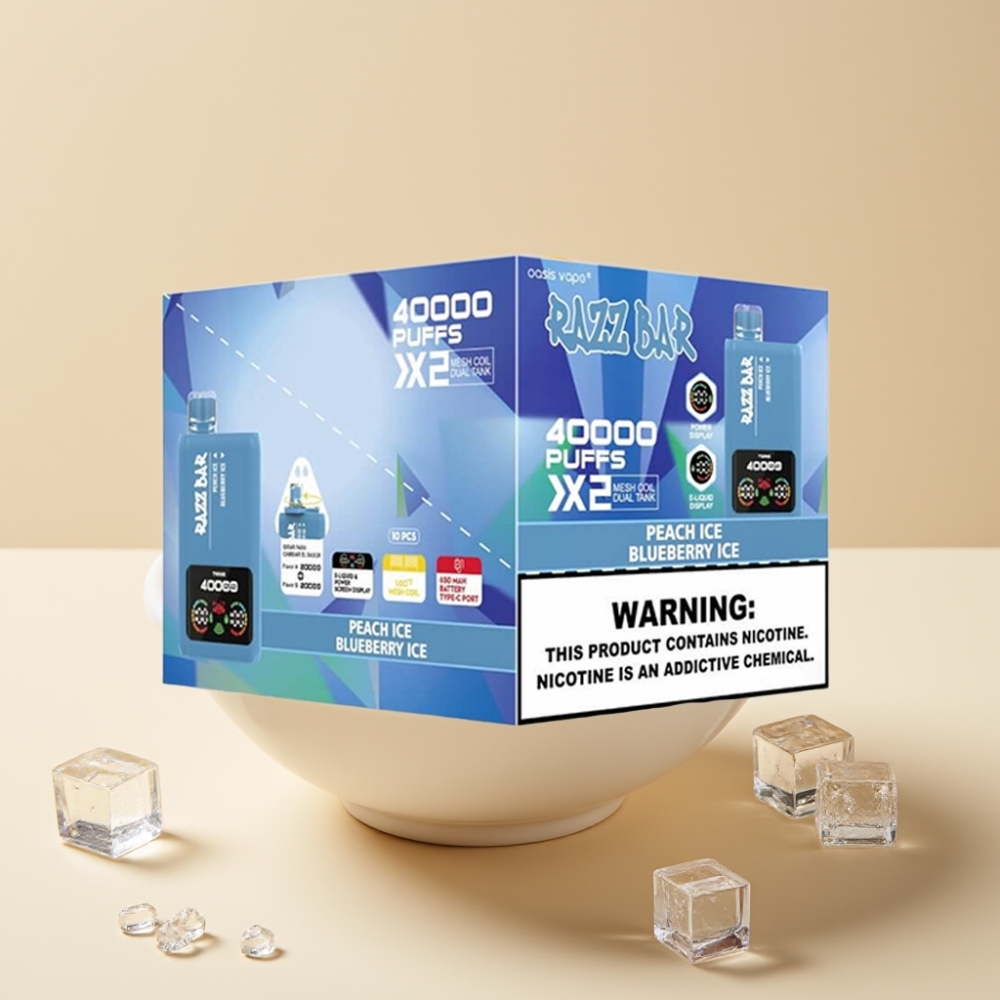 Razz Bar 40000 Puffs Jetable Vape – Glace Pêche & Glace Myrtille – Écran d’Alimentation, Bobine Mesh 1.0Ω×2, Batterie 650 Mah Port Type-C