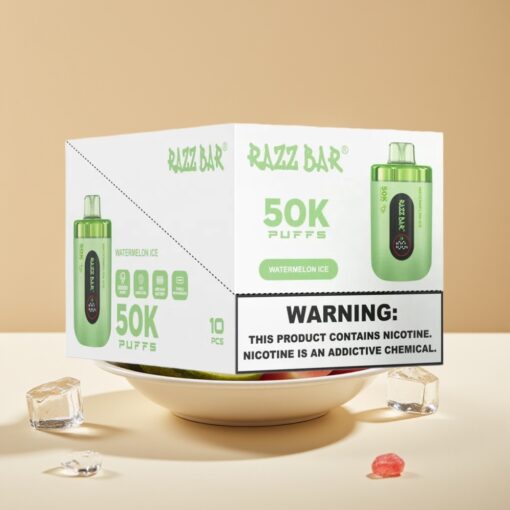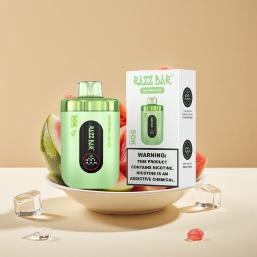 Razz Bar 50K Puffs Jetable Vape Glace Pastèque – 50000 Puffs, 1.0 Ohm Mesh, Rechargeable Type-C