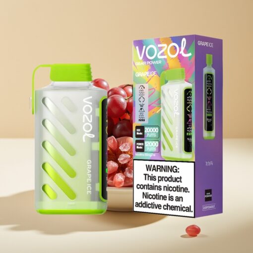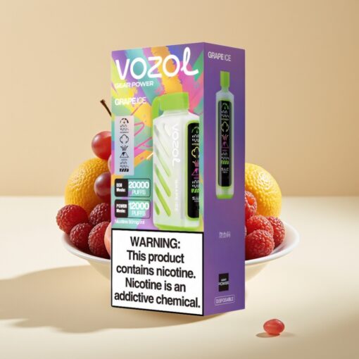 VOZOL Gear Power 20000 Puffs – Glace Raisin – Technologie S.i.L.C. Tech, 20mL, 5% Nicotine, Double Mesh Coil, Écran Complet