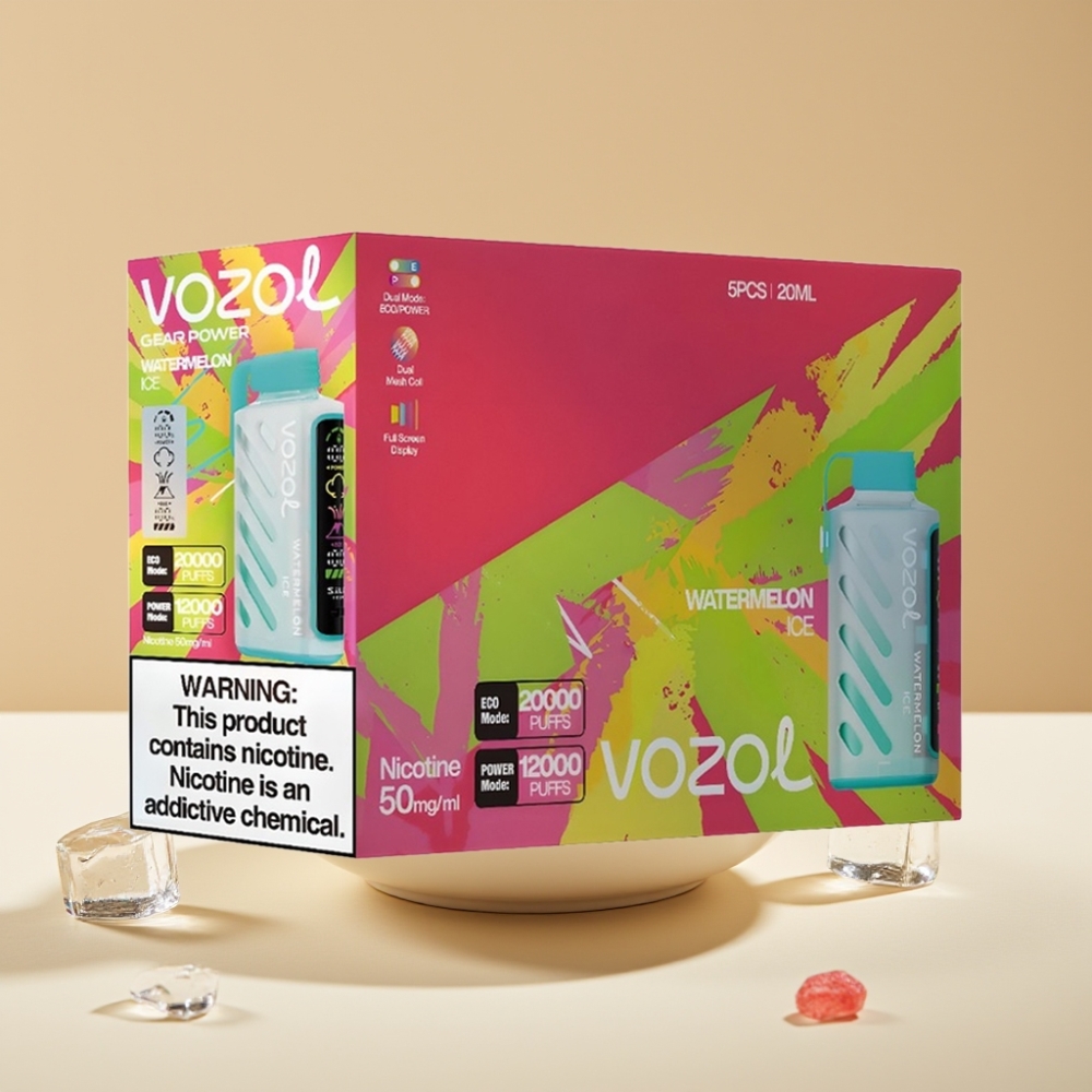 VOZOL Gear Power 20000 Puffs – Pastèque Glacée, 20mL, 5%(50mg), Écran Plein, Double Mesh Coil